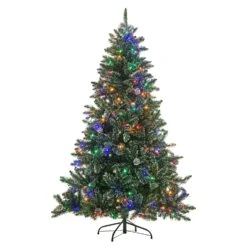 Snow Tipped Frosted Artificial Pines & Berries Christmas Tree With Pre-lit Multi-colour LED Lights (5ft To 8ft)