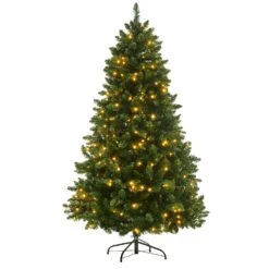 Pre-lit Artificial Green Spruce Christmas Tree With Warm White LED Lights (5ft To 8ft)