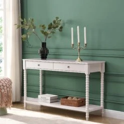 Aldwinke Beige Bobbin 2 Drawer Large Console Table