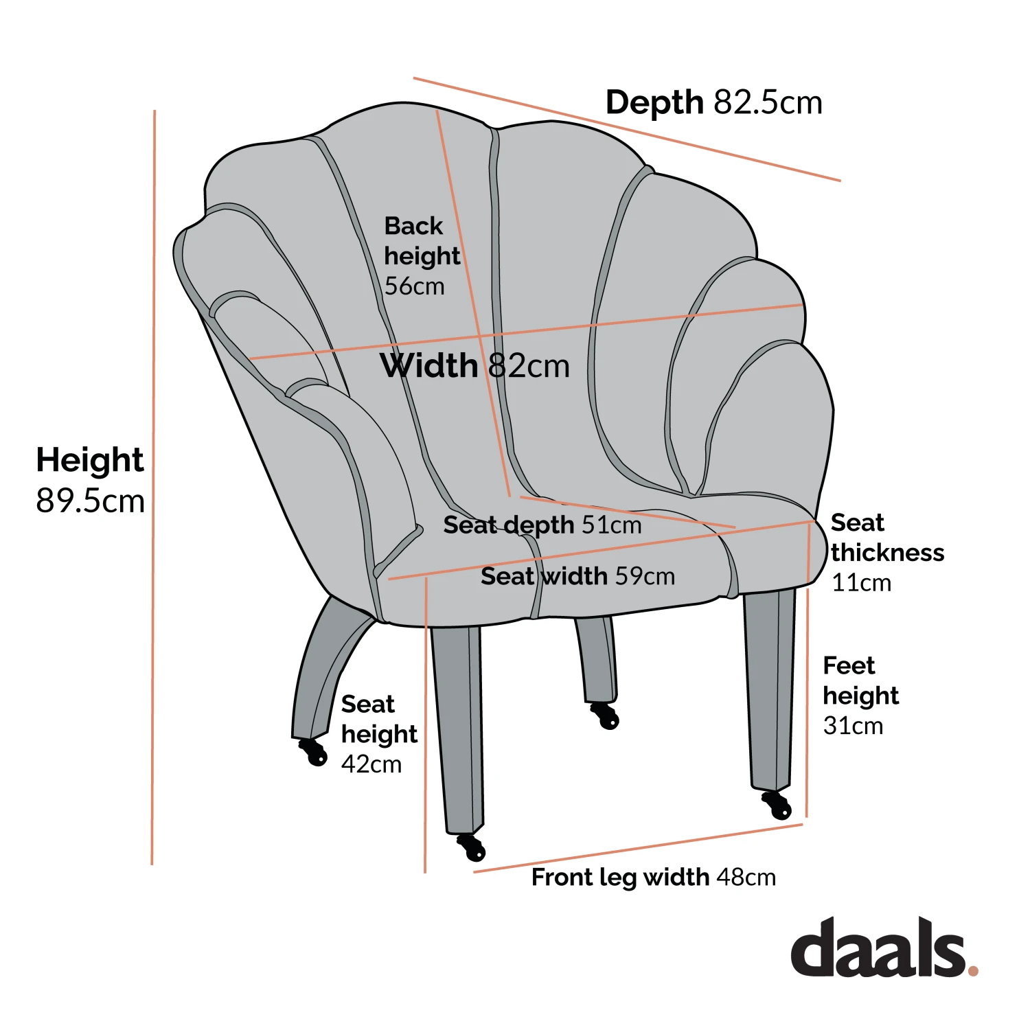 - Seat depth: 51 cm