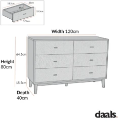 - The six drawers pull out on metal runners, providing ample storage space for clothes, bedding etc.